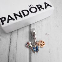 Charm Colgante Triple Corazón Arcoíris, Mariposa Y Paz Mujer Pandora